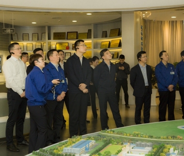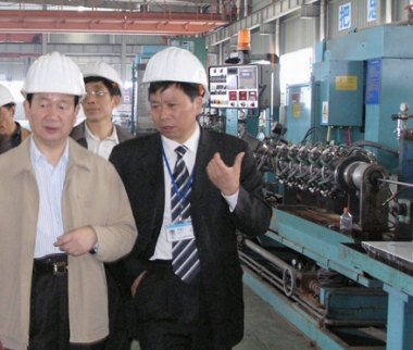 2007年2月,時任浙江省原副省長金德水(左二)視察久立生產現場